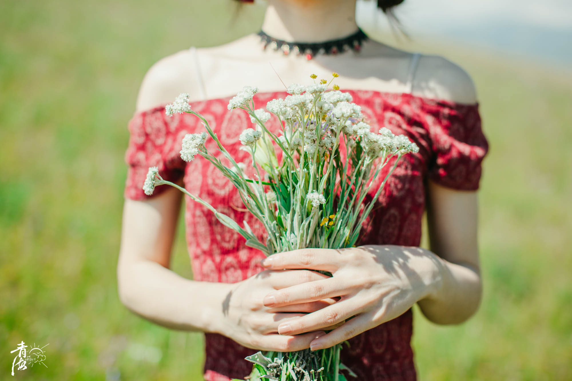 哈哈,原来兔心生一计,现场野花编花环,我一顶她一顶,太浪漫惹,我们举办了一场草原婚礼~