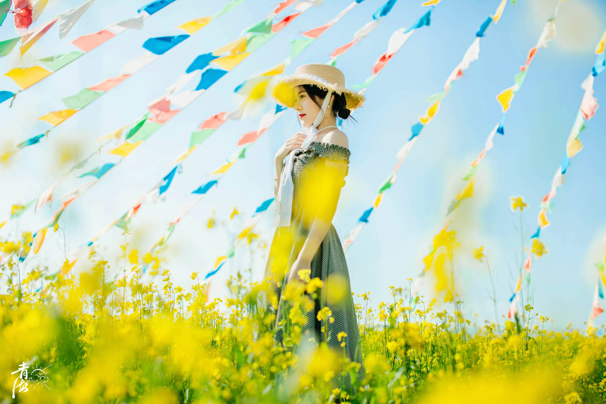 二郎剑出来继续往金 沙湾 方向开,没多远就能看见八月仅存的油菜花了,规模跟 门源 没法比,走进了看花也是小朵小朵的不繁茂,属于拍出来比实际好看的那种景,因为相机取景框有限,拍出来感觉还蛮大型的。跟二郎剑景区没啥关系,路边各家围起来收费,10.00/人,花田随便进出随便拍。兔和嘟坐的湖边秋千也在这附近,远远的看见两棵树在湖边的地方就是了。